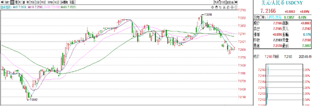 周五晚间在岸人民币兑美元收报7.2090,较前一交易日贬值23个基点。当日人民币兑美元中间价报7.1938,调升25个基点。在4月底春季假期与复活节期间出现短期激增后,美国上周初请失业金人数呈现下降趋势。美联储主席鲍威尔指出,虽然关税政策可能导致失业率上升和通胀加剧,但当前劳动力市场依然稳健。贸易战局势目前有所改善,市场避险需求走弱。国内端,央行宣布推出十项政策措施,其中包括全面降准0.5个百分点,下调政策利率0.1个百分点,降低结构性货币政策工具利率和公积金贷款利率0.25个百分点,设立5000亿元“服务消费与养老再贷款”等,而金融监管总局将推出八项增量政策,我国经济韧性强,稳经济目标不改。
