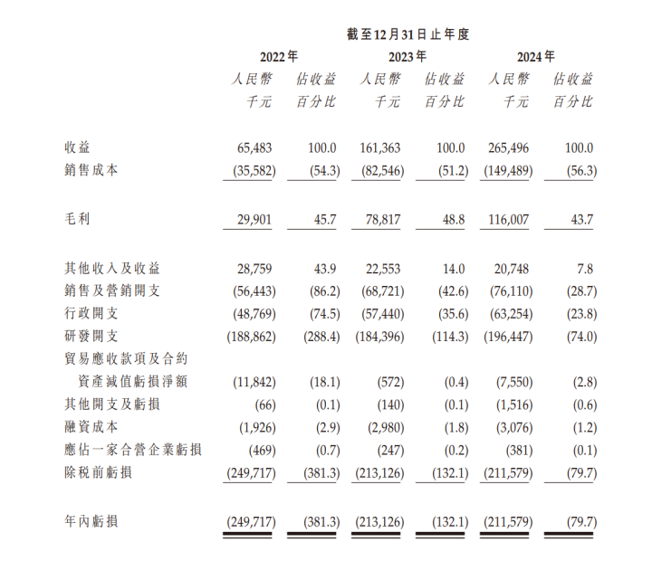 业绩方面,招股书显示,2022年、2023年及2024年,驭势科技实现收益分别约为6548.3万元、1.61亿元、2.65亿元;目前公司尚未实现盈利,年内亏损分别约为2.5亿元、2.13亿元、2.12亿元。