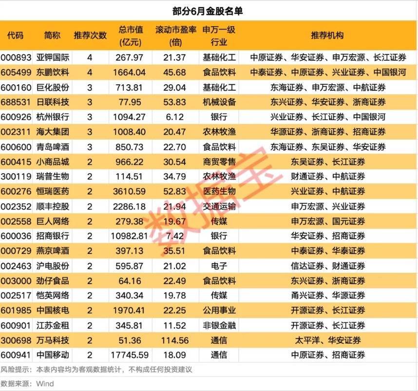 21股进入6月金股榜单