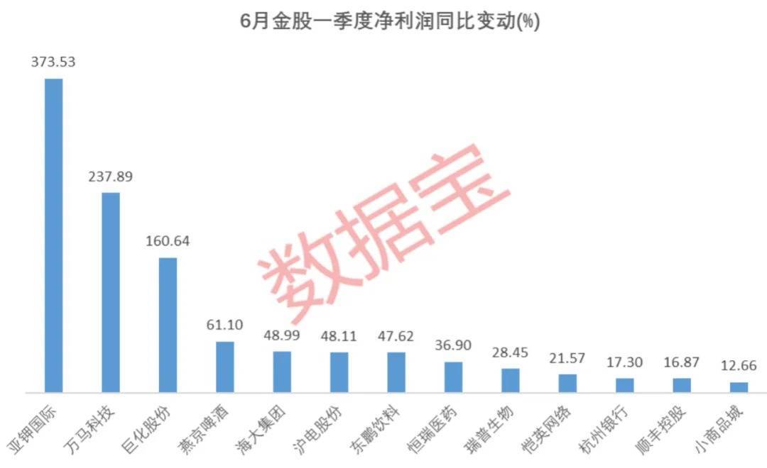 从一季度业绩来看,上述21只券商6月金股表现优异,今年一季度全部实现盈利。以净利润变动统计,13股净利润同比增幅超过10%,亚钾国际、万马科技、巨化股份同比翻倍。