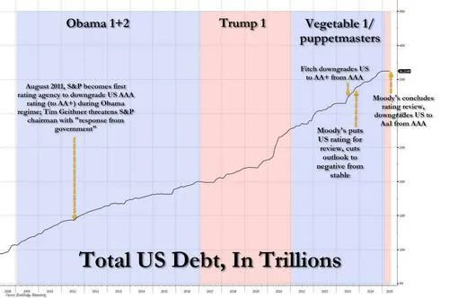 从客观角度来看,高盛的顶级交易员RichPrivorotsky指出,Moody’s的此次下调实际上是落后于其他评级机构的,这些机构早在数年前就已将美国主权信用评级从AAA下调。