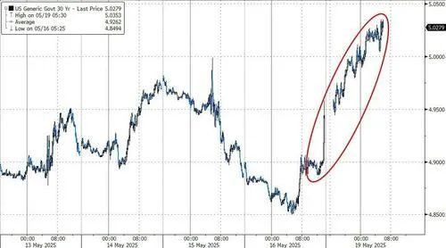 美国信用评级被下调,导致美股股指期货下跌,30年期美债收益率测试5%线上配资平台官网,10年期收益率重新突破4.5%。